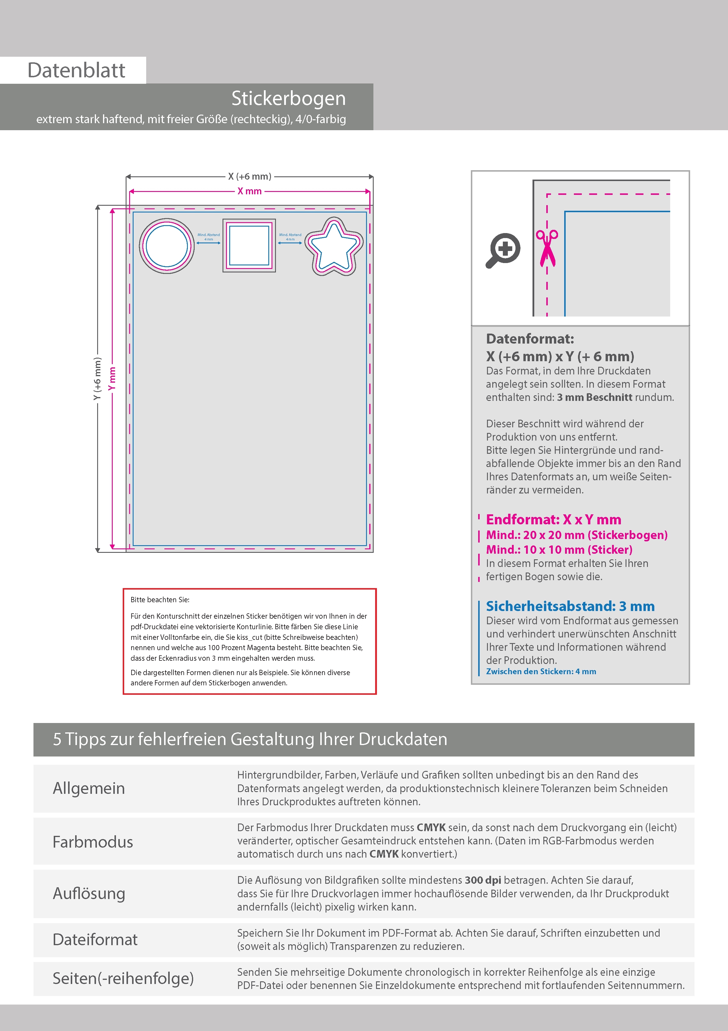 Stickerbogen extrem stark haftend 4/0 farbig bedruckt mit freier Größe (rechteckig)