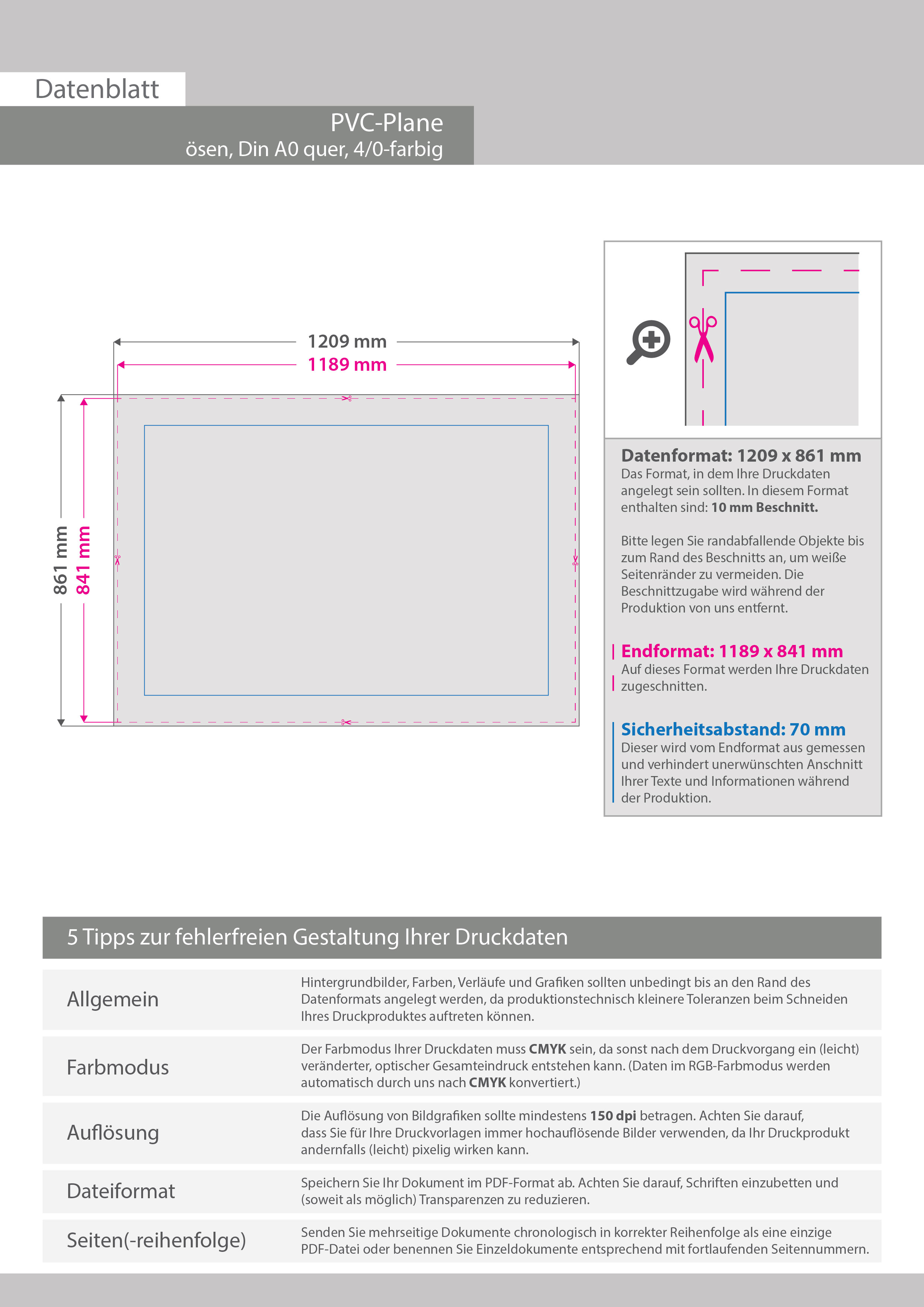 Hochwertige PVC-Plane DIN A0 quer (118,9 x 84,1 cm), 4/0-farbig bedruckt, Ösen im Abstand von 50 cm rundum